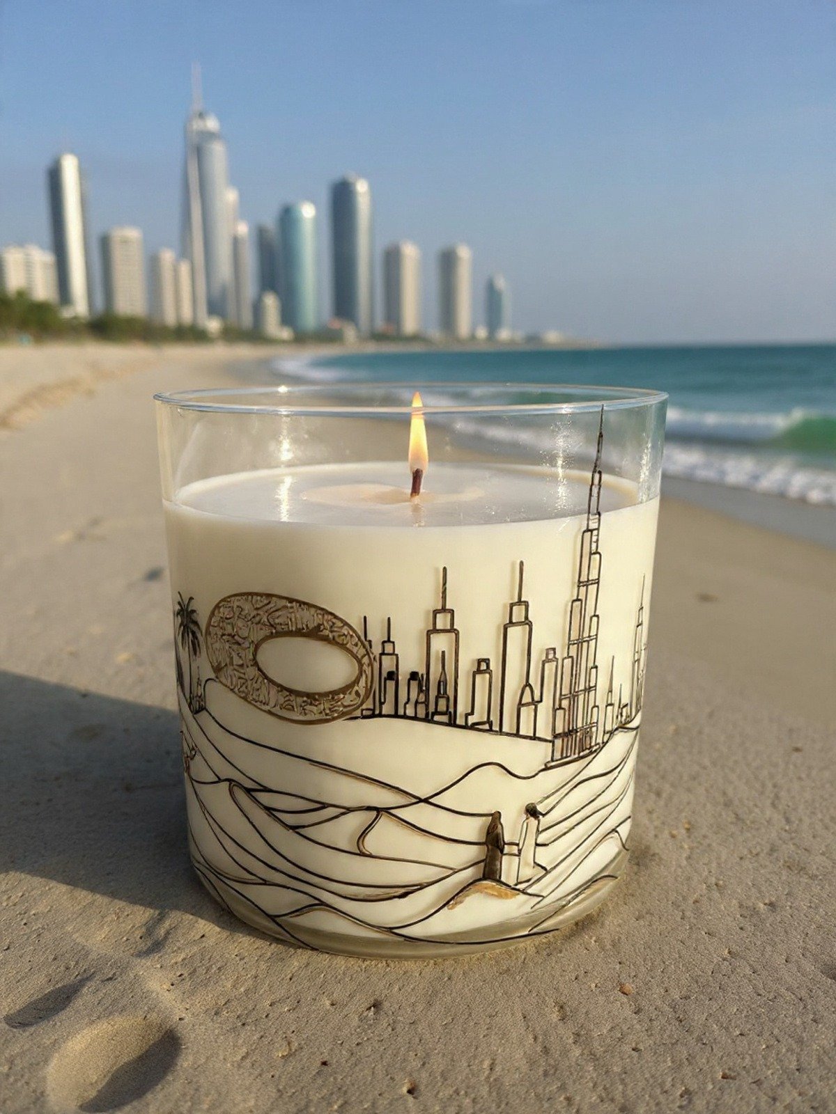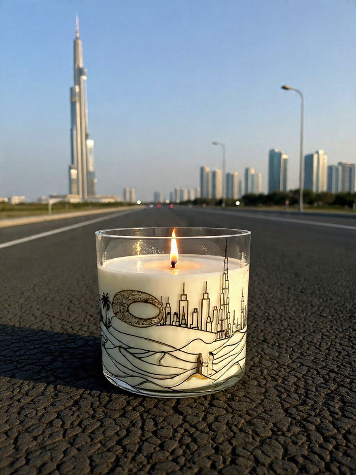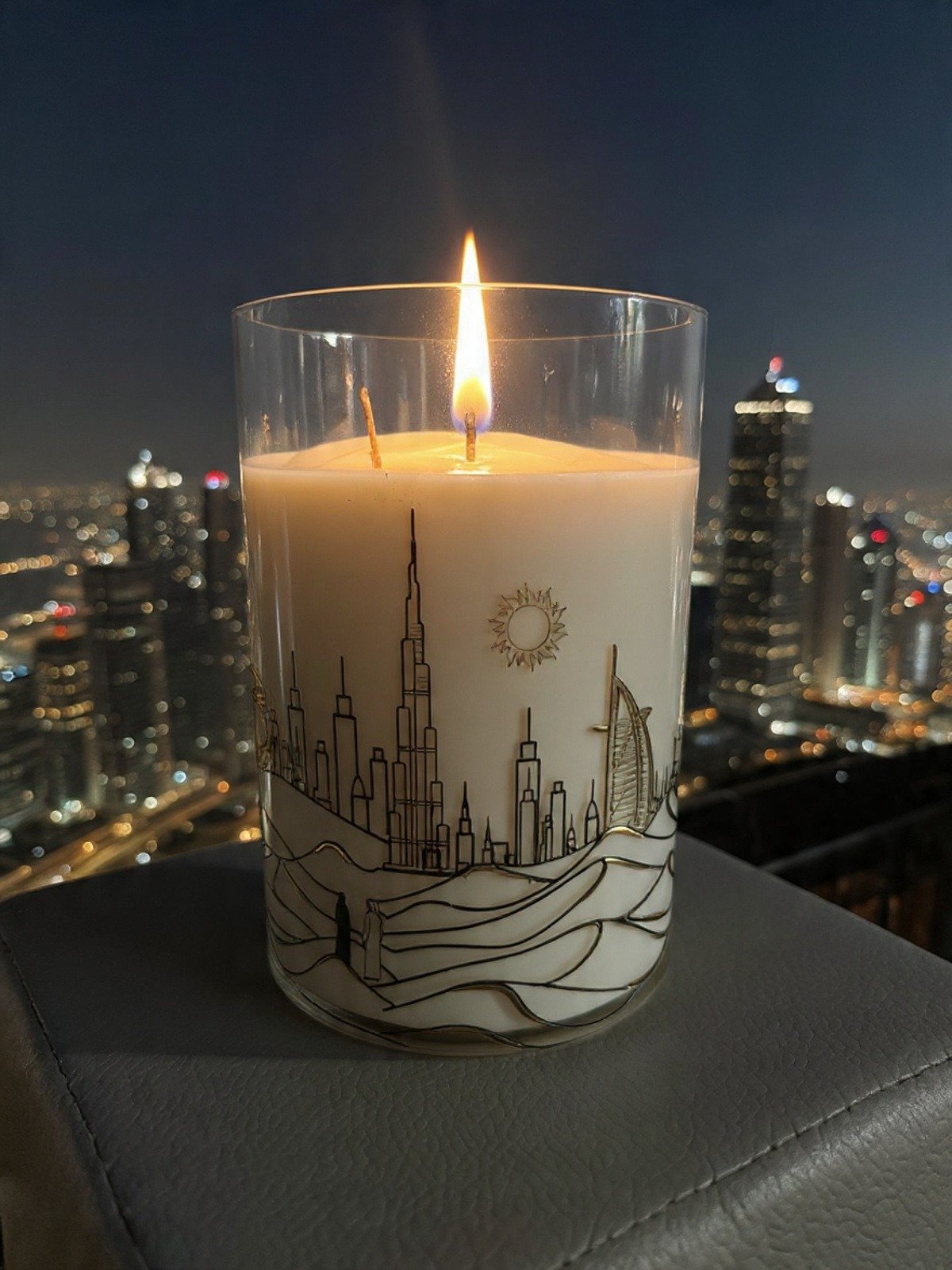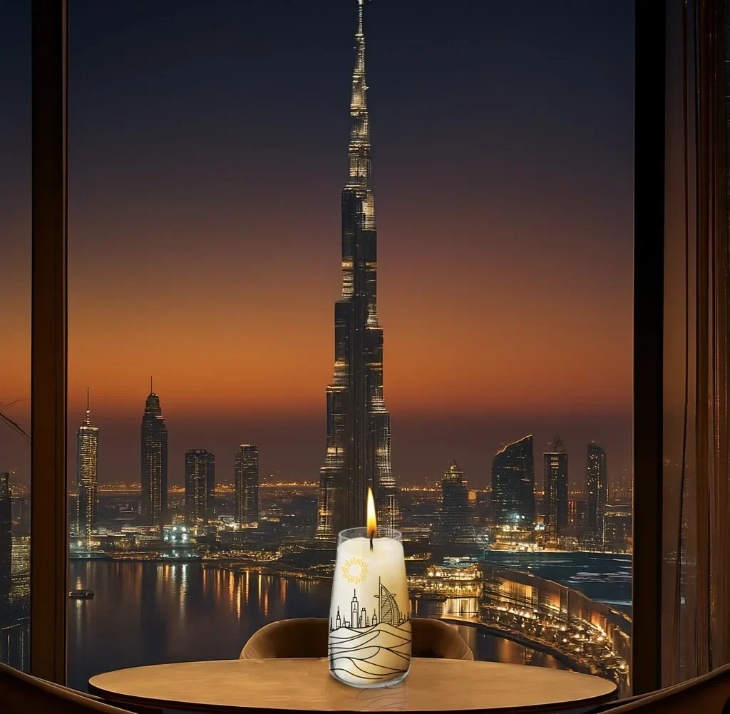 Imagine the moment the sun dips below the Dubai Skyline. Painting dunes in shades of the amber sun and the blue sky. Here is where the story of the Dubai Candle begins: